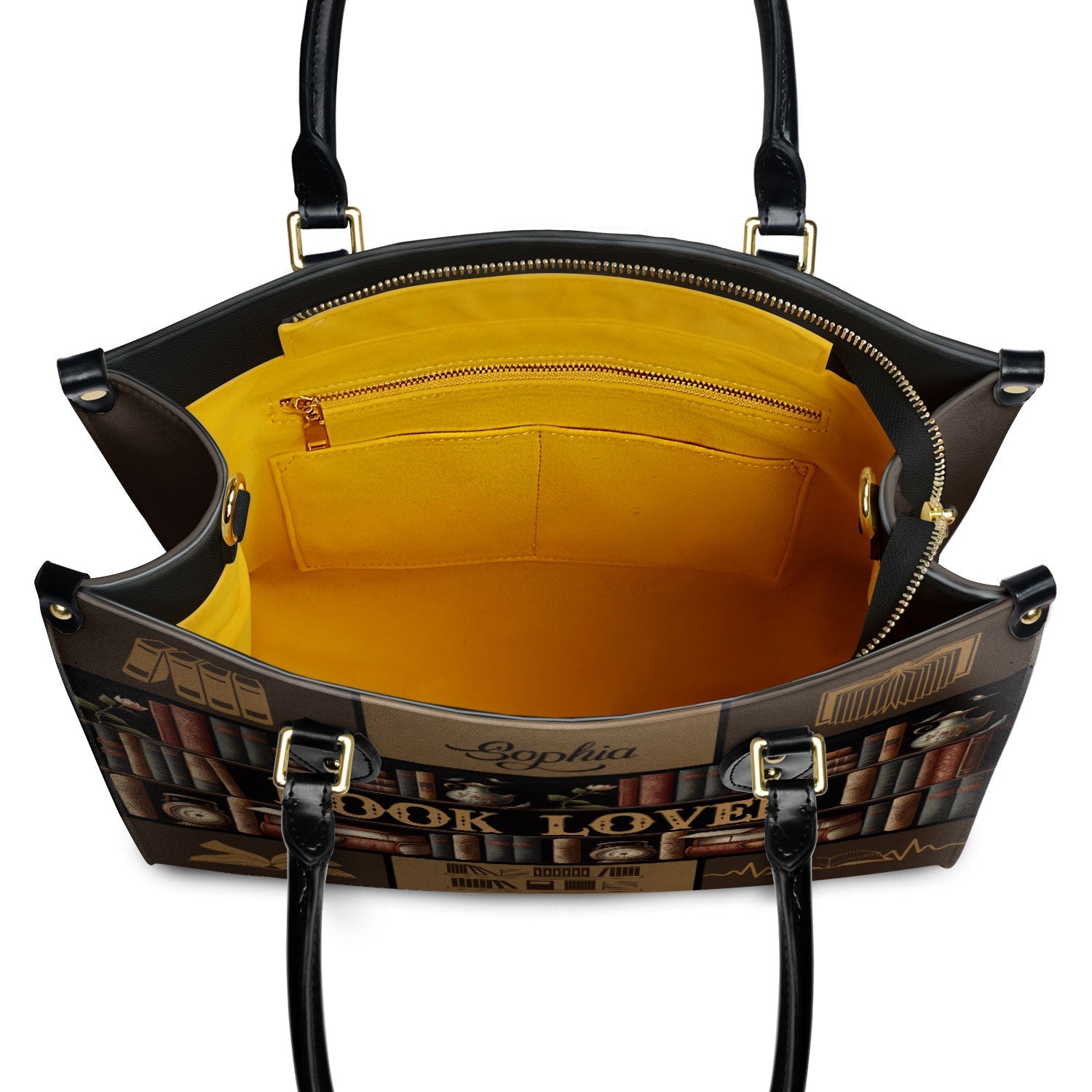 This handmade leather bag is designed for people who love books, with a book lover design printed on both sides. Simple as that.
