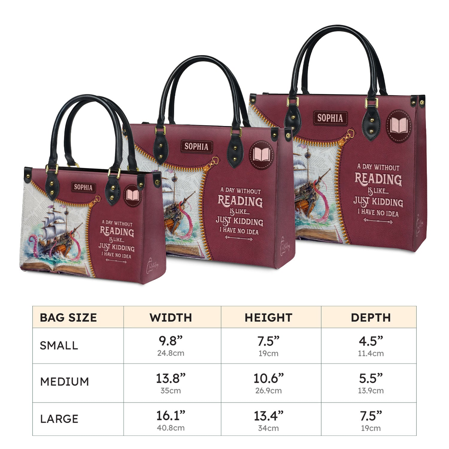 This leather bag has “A Day Without Reading Is Like Just Kidding I Have No Idea” printed on both sides. If that makes you laugh, you already know this bag is yours.