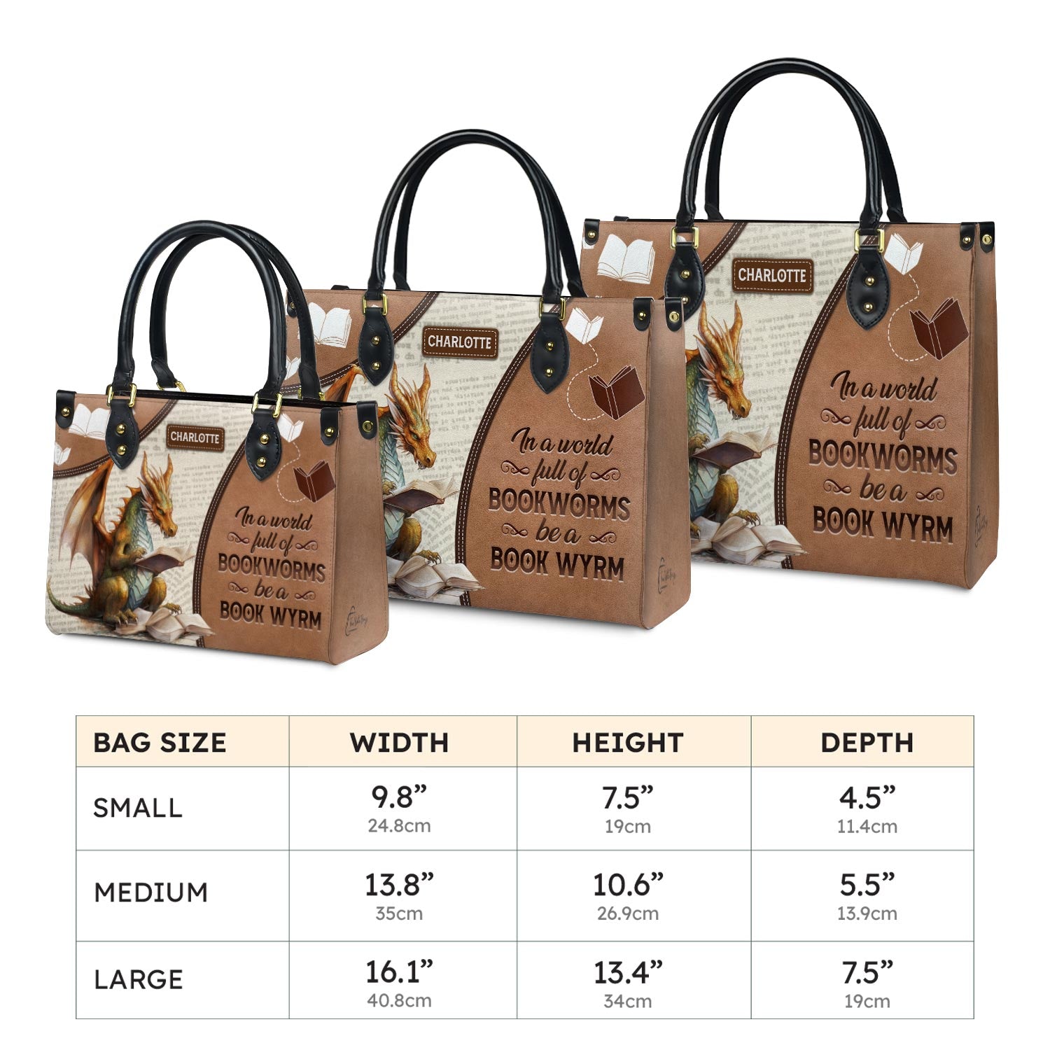 This leather bag has the quote “In A World Full Of Bookworms Be A Book Wyrm” printed on both sides. If that line makes you smile, you already know this bag is for you.