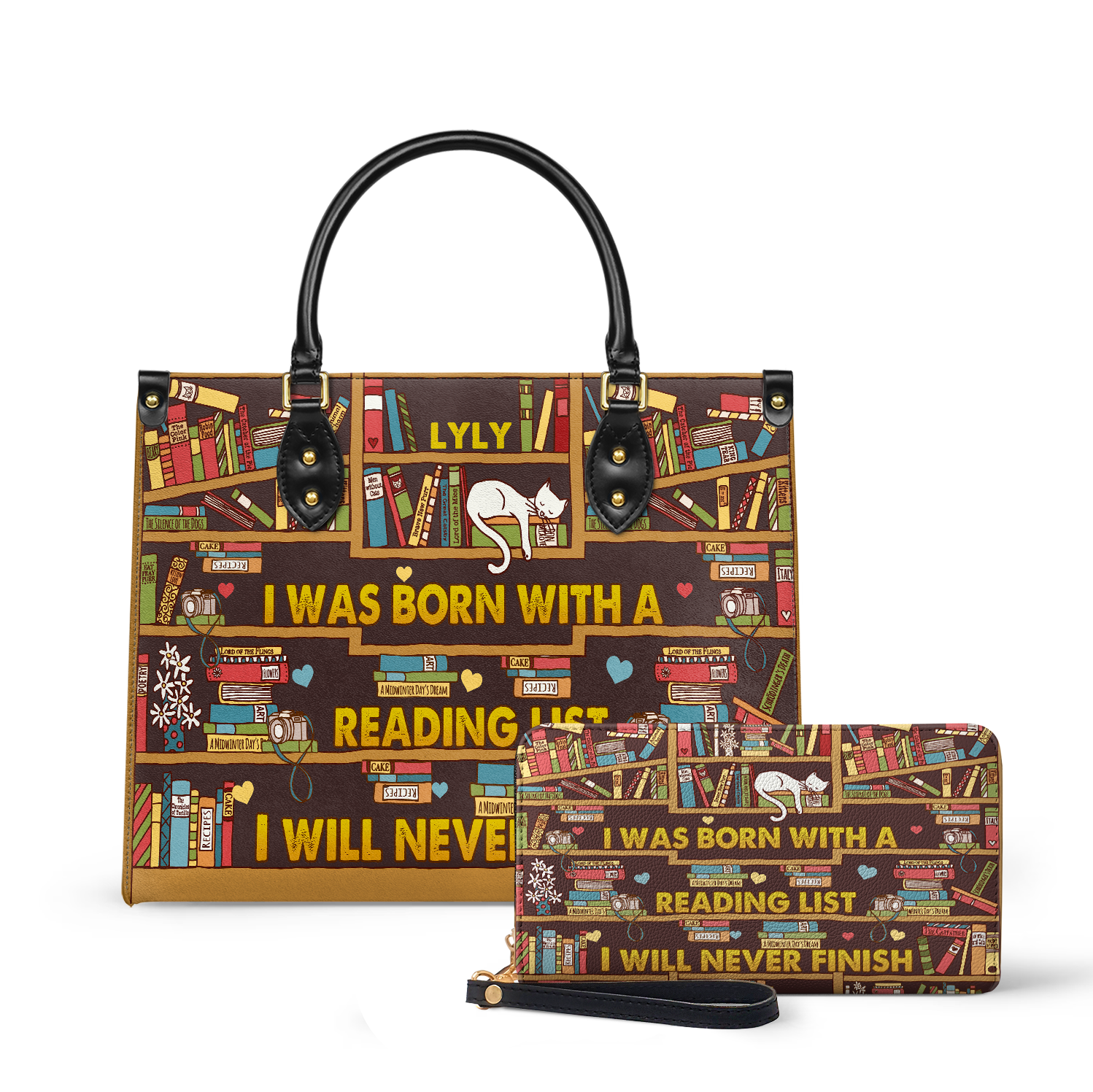 This leather bag has “I Was Born With A Reading List I Will Never Finish” printed on both sides. If that line speaks to you, this bag was made with you in mind.