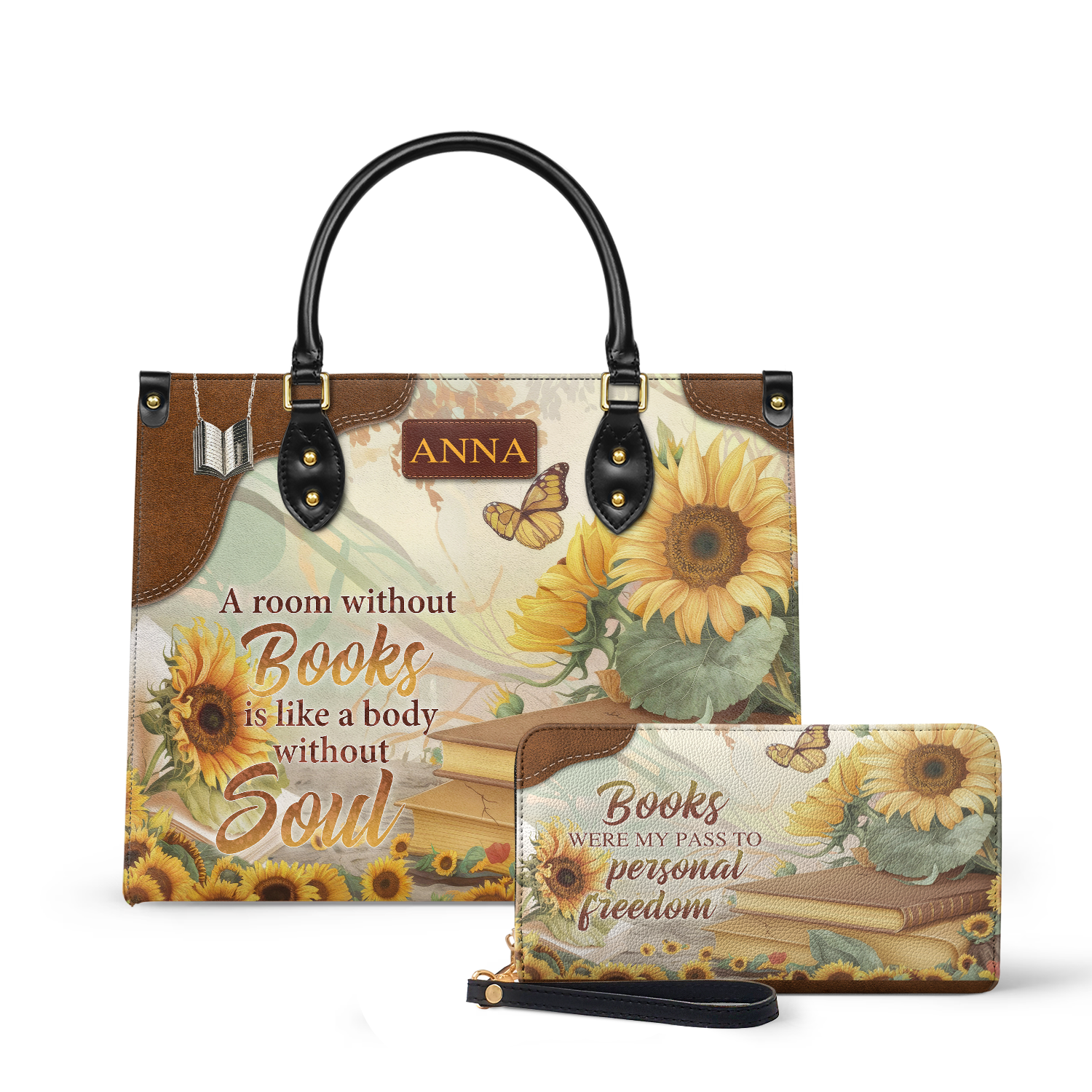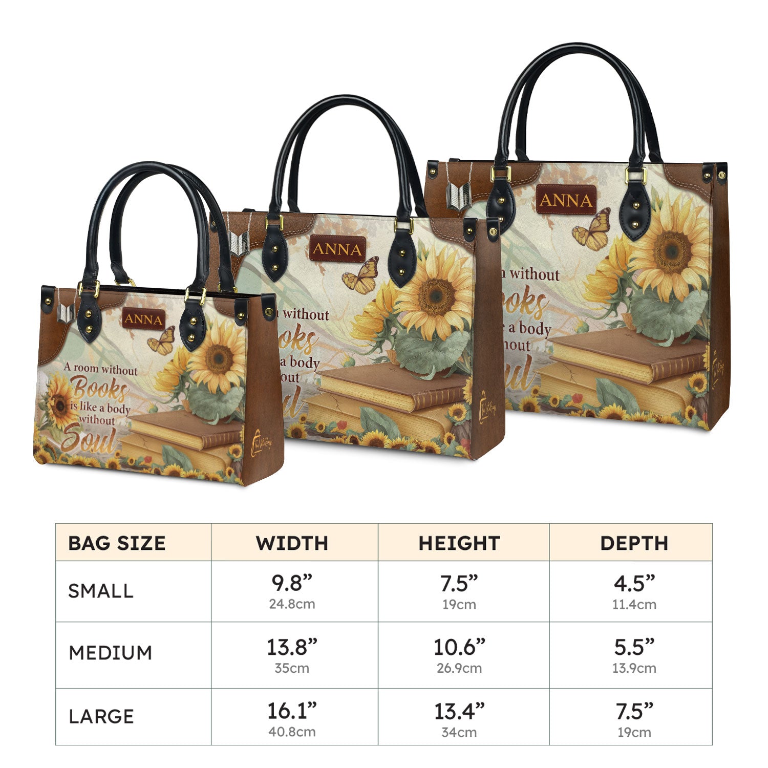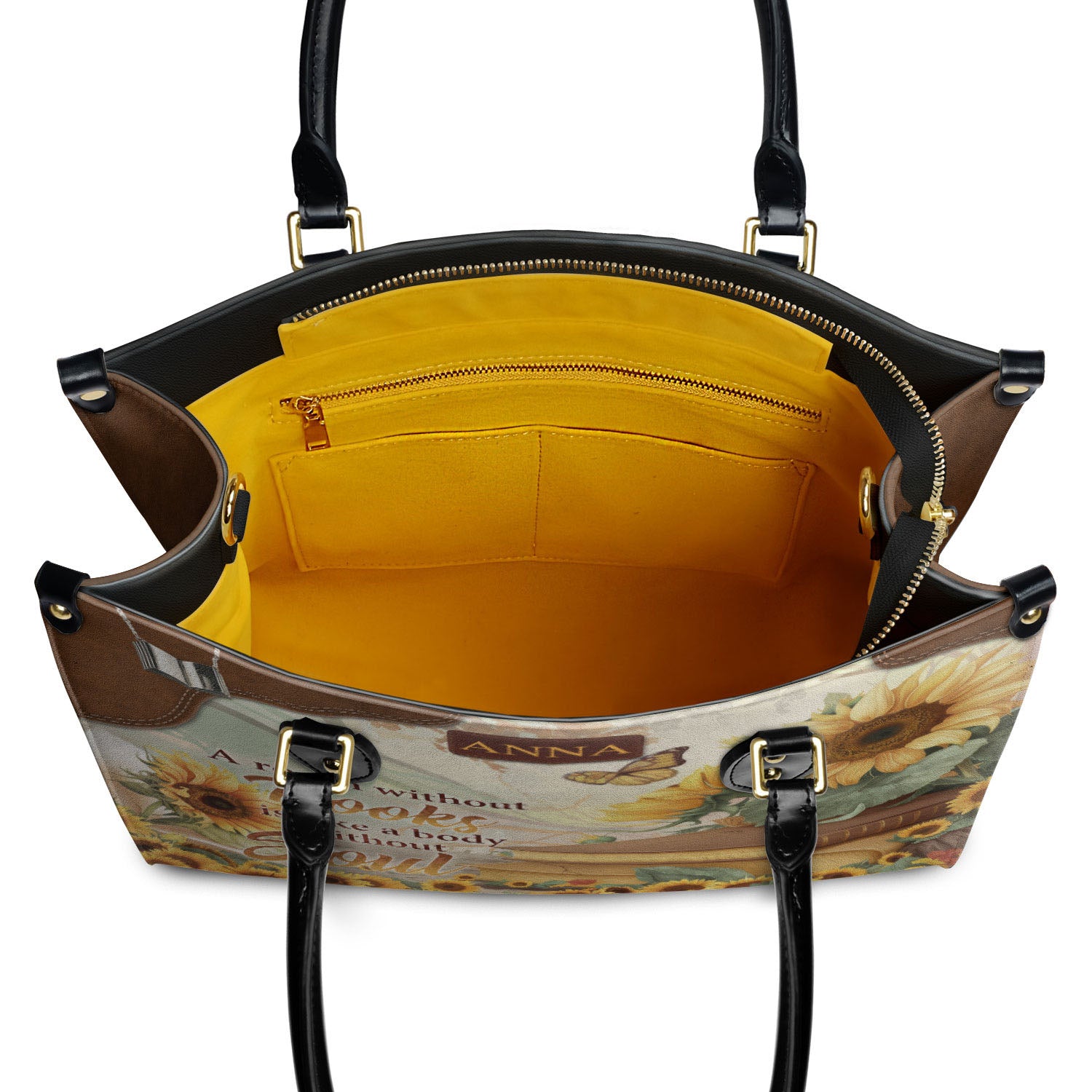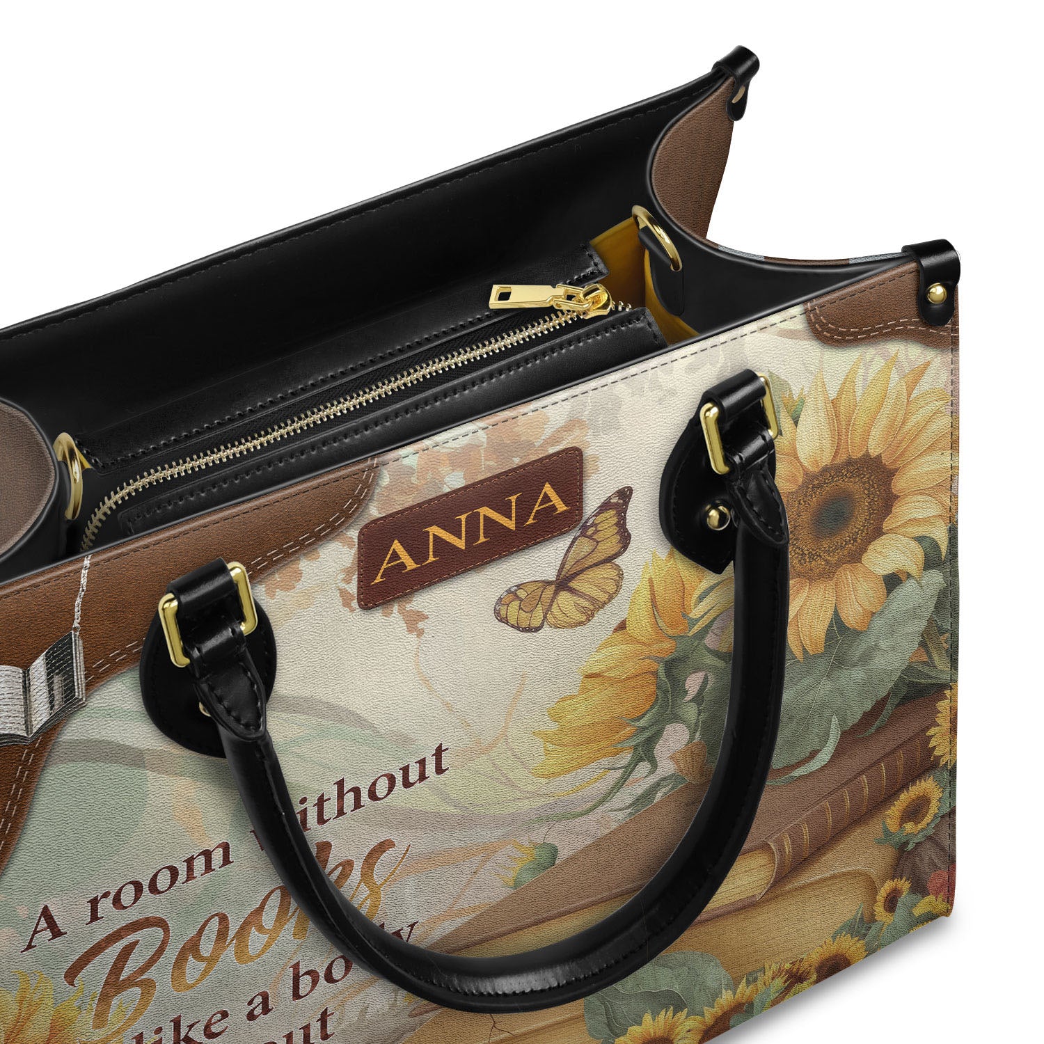 This handmade leather bag features a sunflower design printed on both sides. It is the kind of bag that feels personal the moment you pick it up.