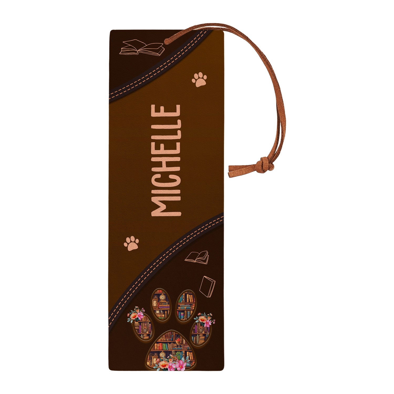 A handmade leather bookmark with “Easily distracted by dogs and books” on it. Genuine leather, good weight in the hand, and it sits flat in the pages without leaving marks. The kind of bookmark you actually want to use, not just shove in a drawer.