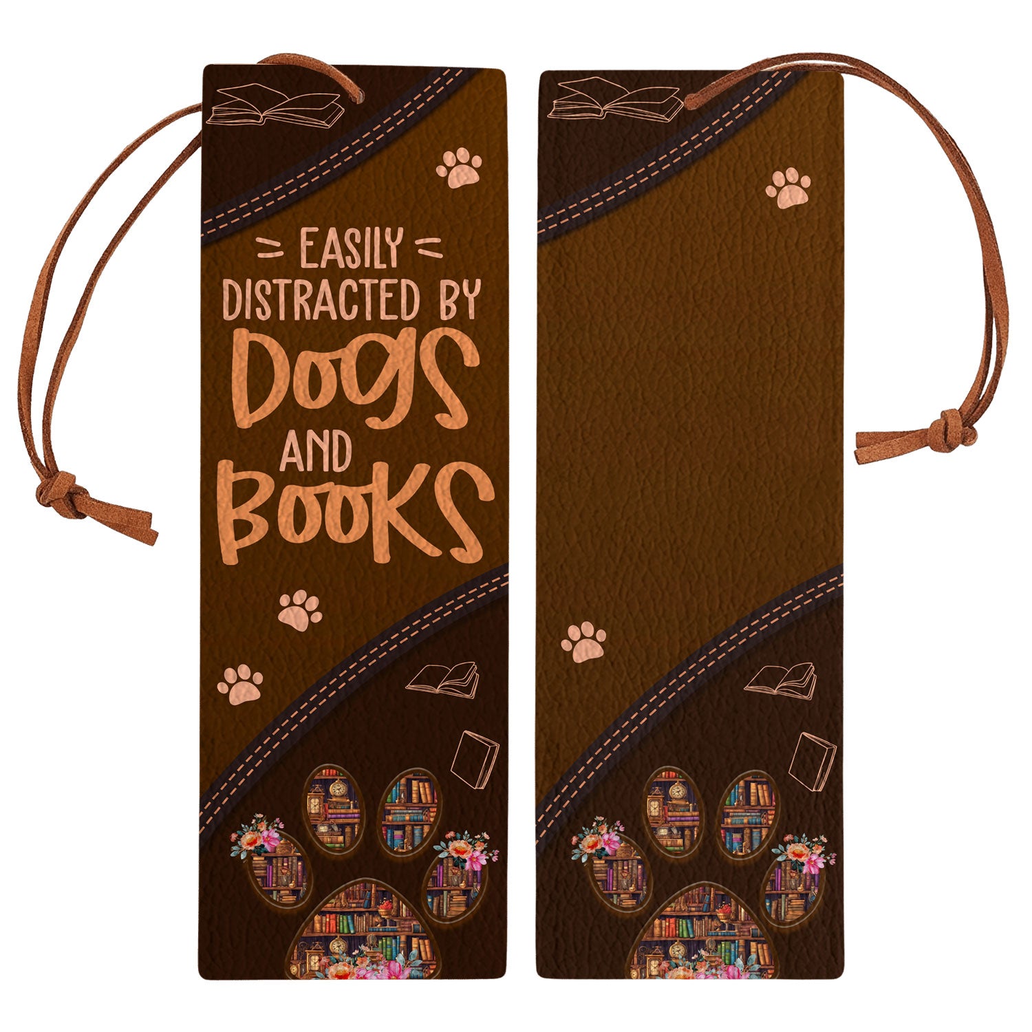 Handmade leather bookmark with “Easily distracted by dogs and books” quote. Genuine leather, 6.5 x 2.2 inches. For the reader who also stops to pet every dog.