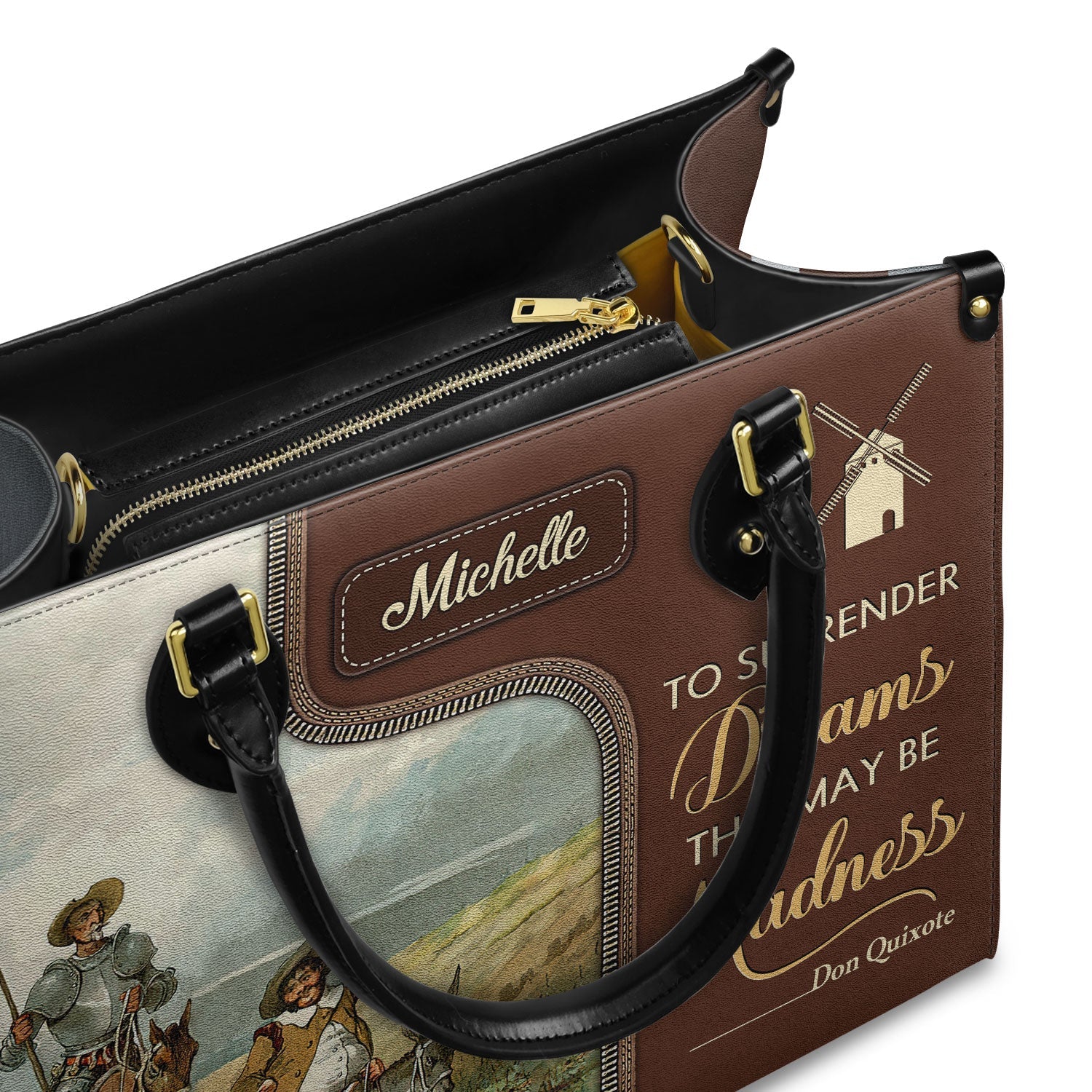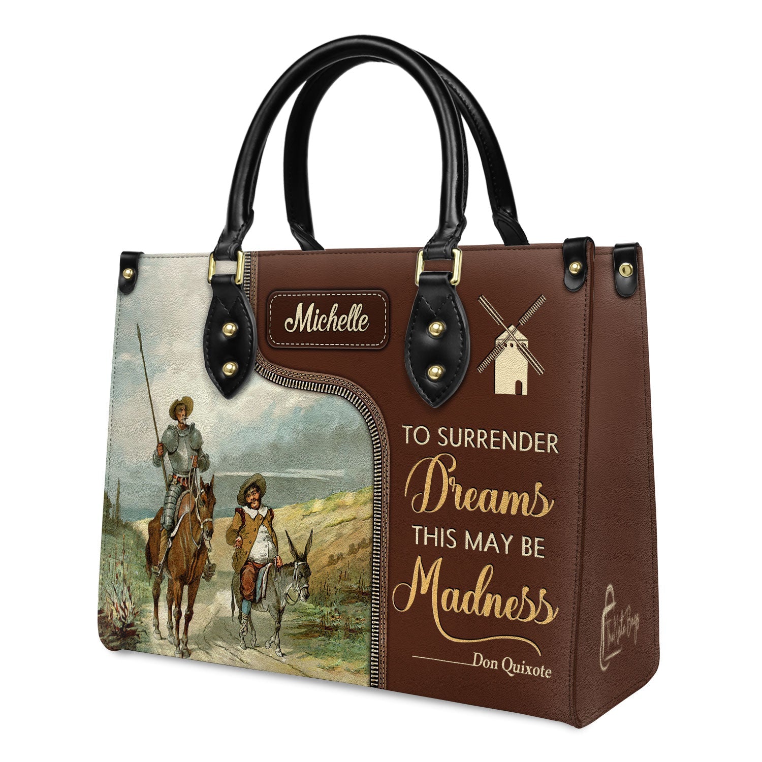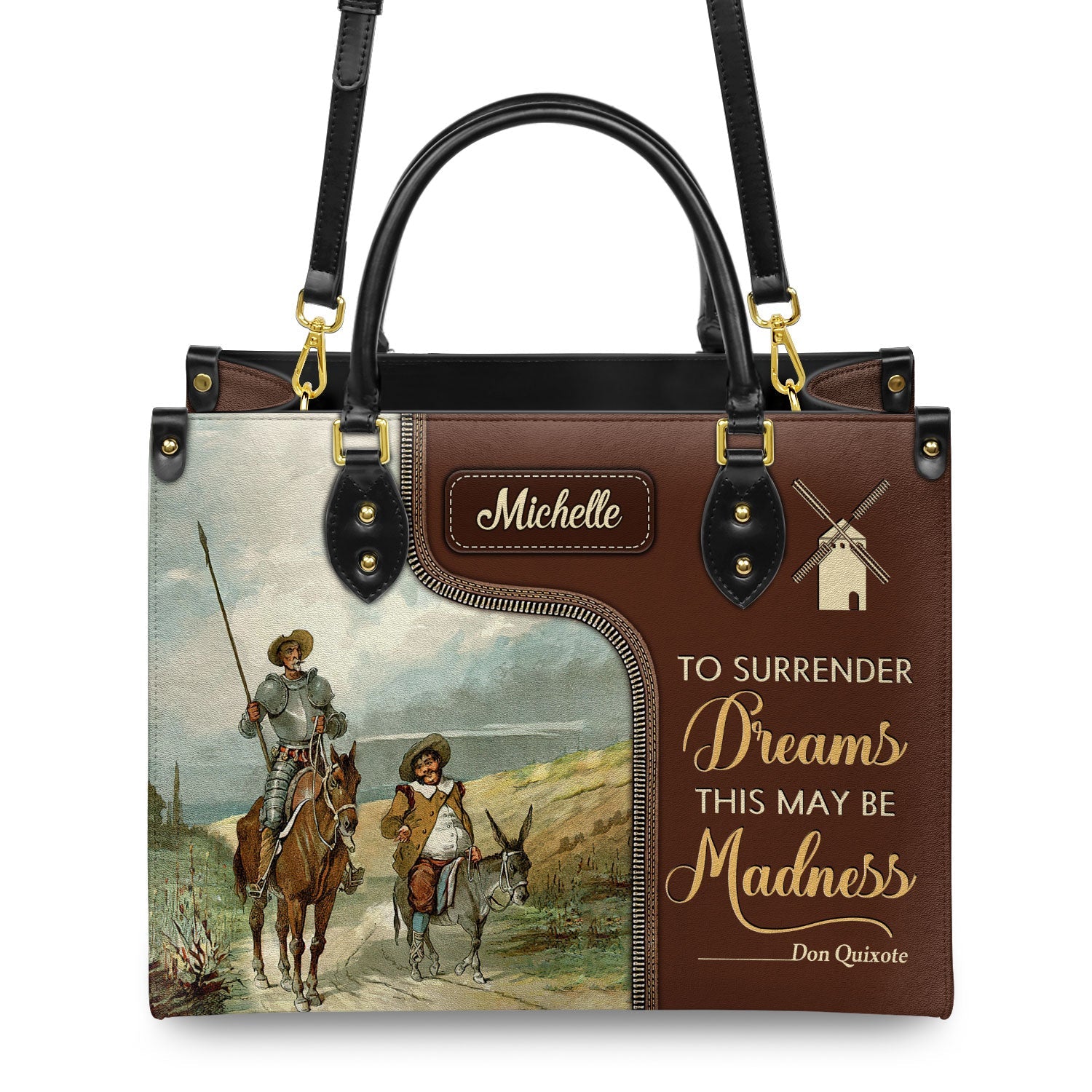 Don Quixote Quote Leather Bag – Personalized Literary Gift