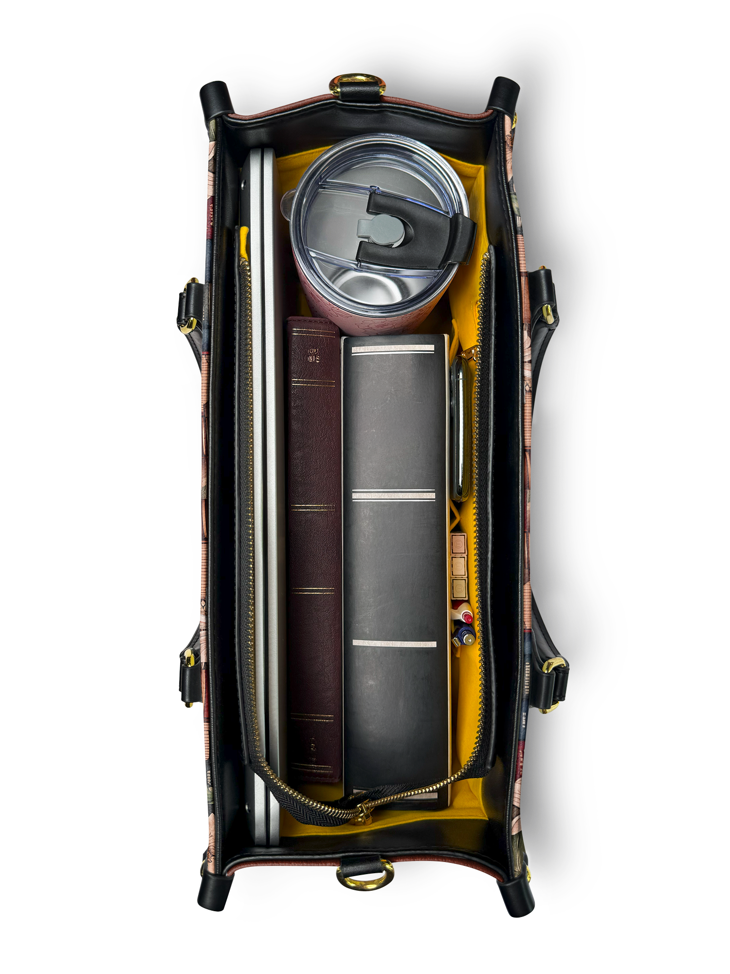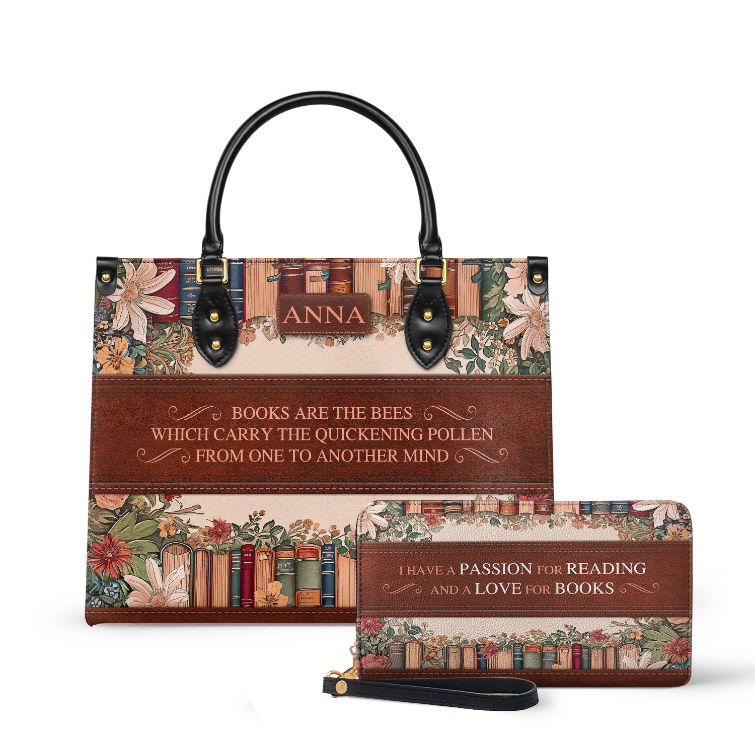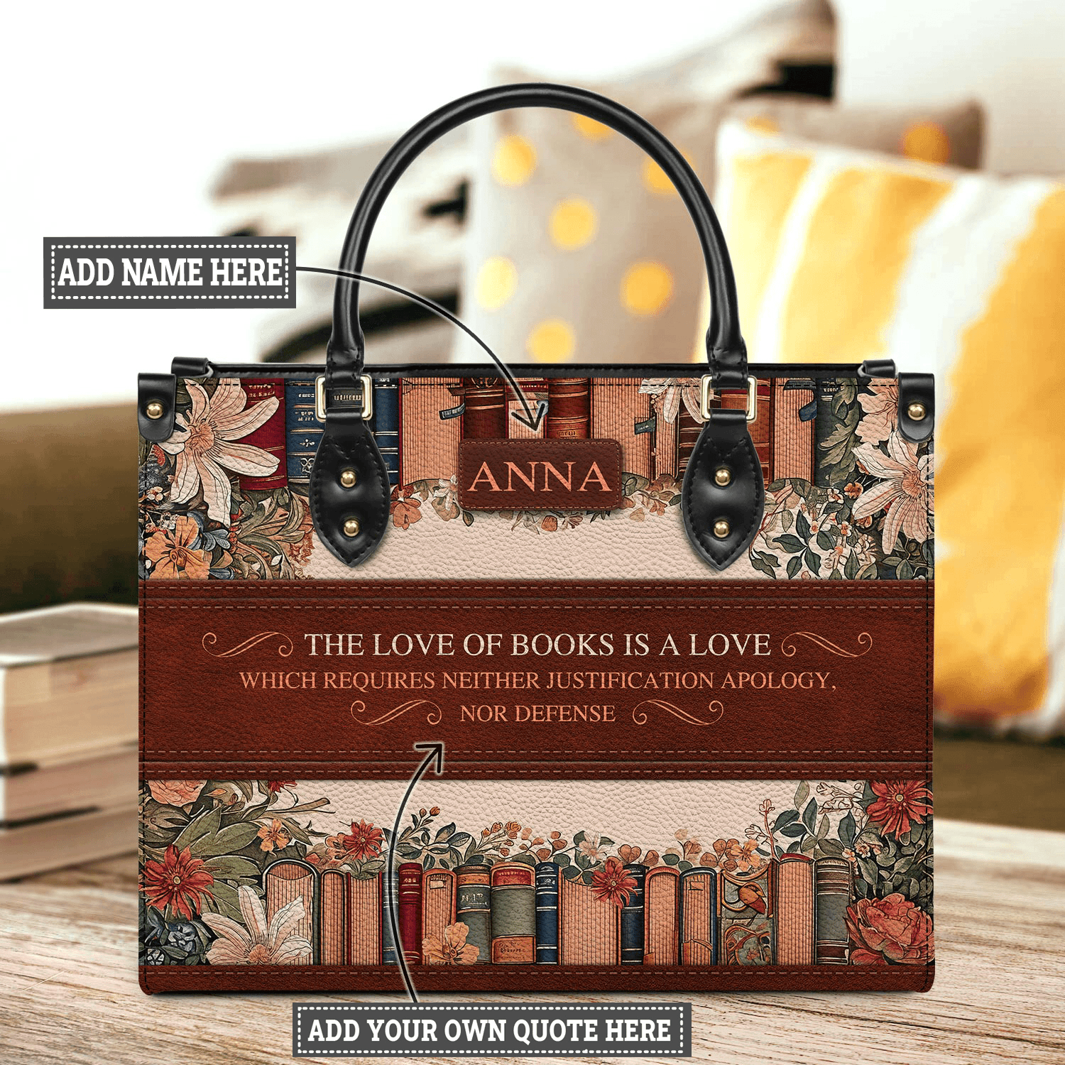 Floral Bookshelf Quote Leather Bag – Custom Personalized Gift