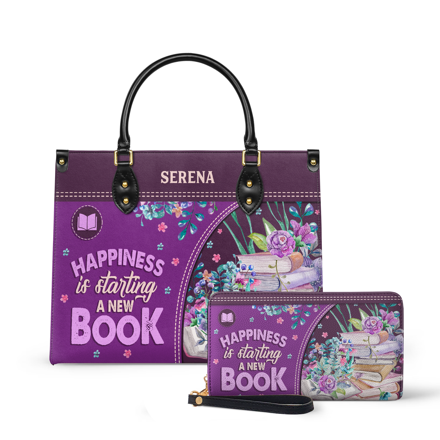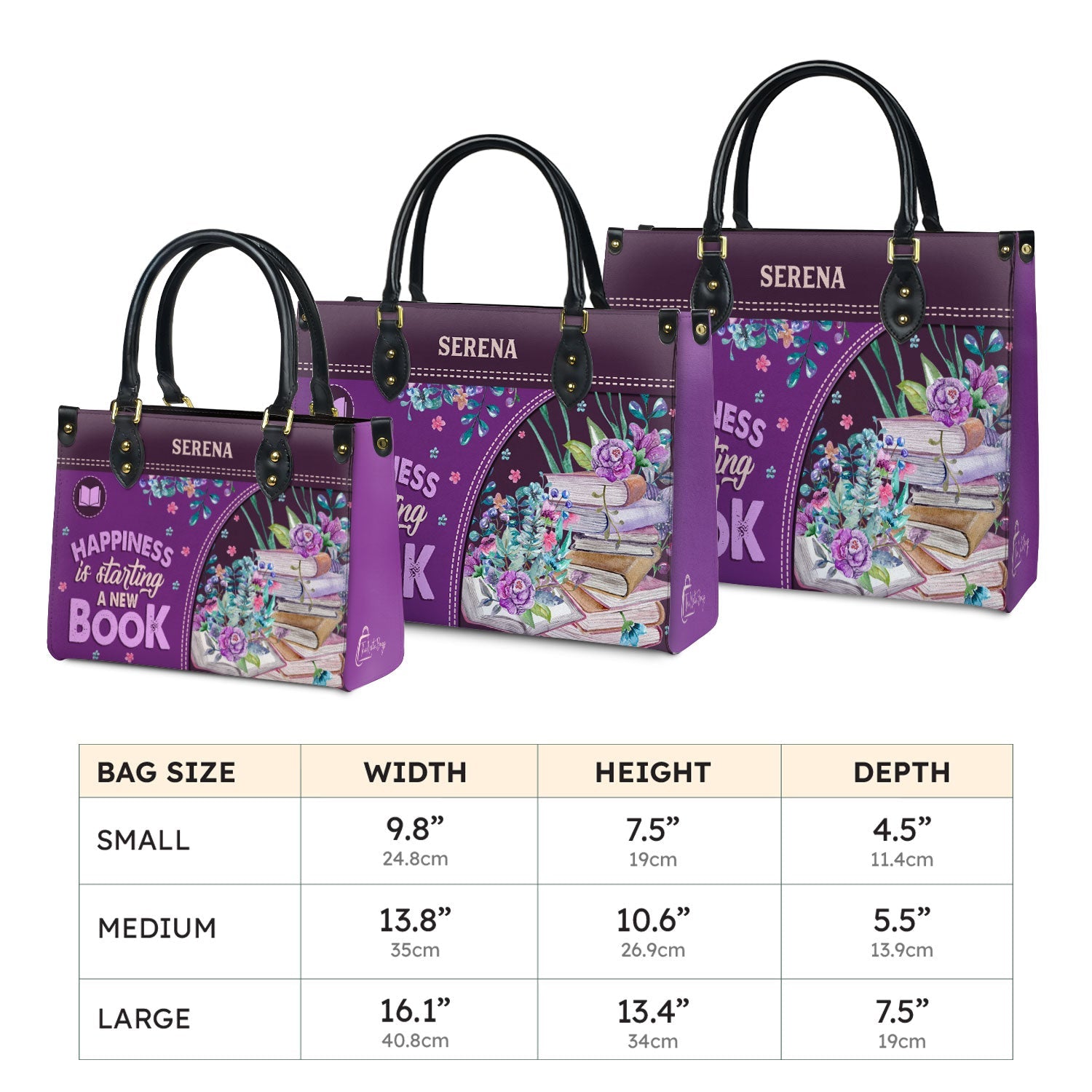 This leather bag has the quote “Happiness Is Starting A New Book” printed on both sides. If that line makes you smile, you already know this bag is for you.