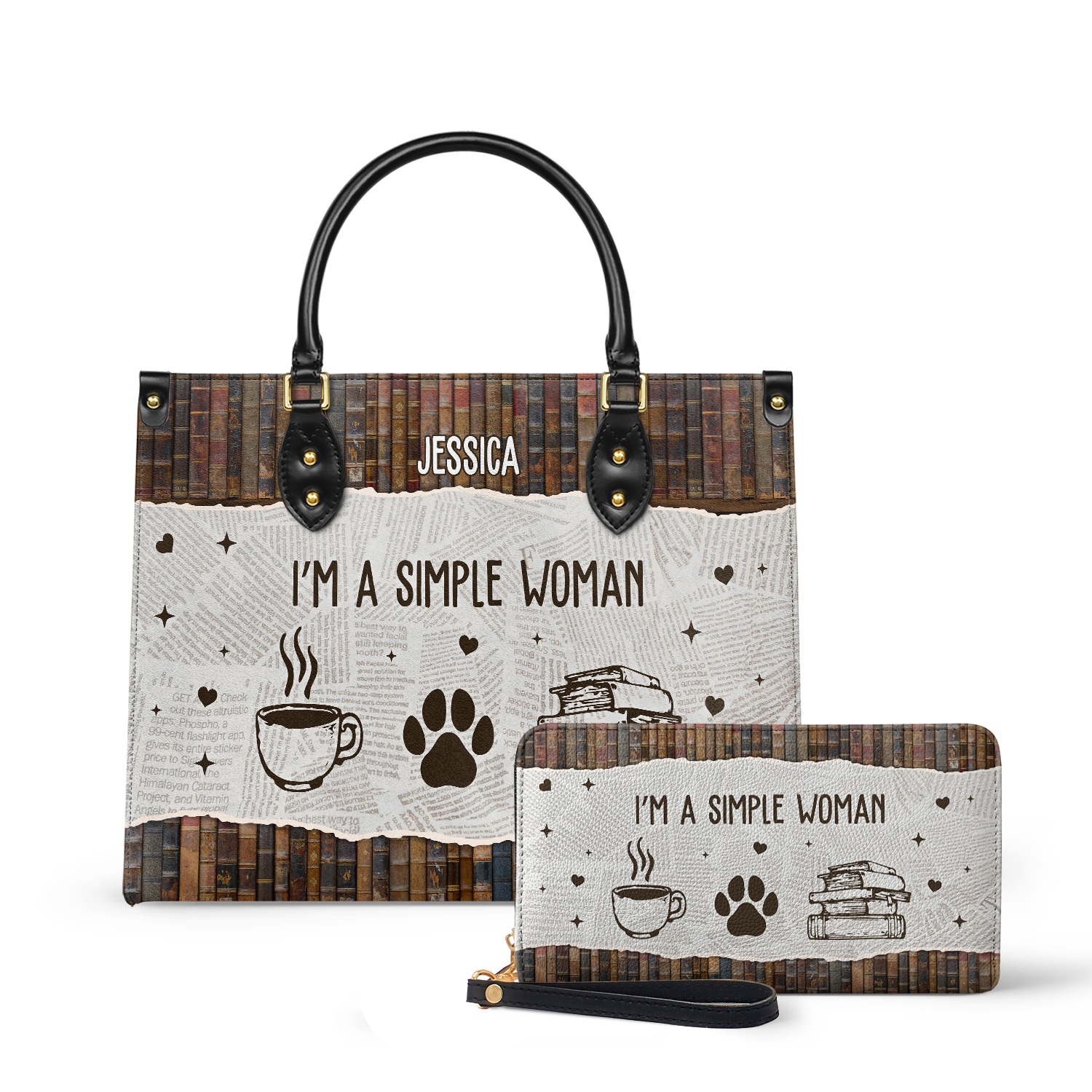 I Am A Simple Woman Leather Bag - Personalized Dog & Coffee Quote