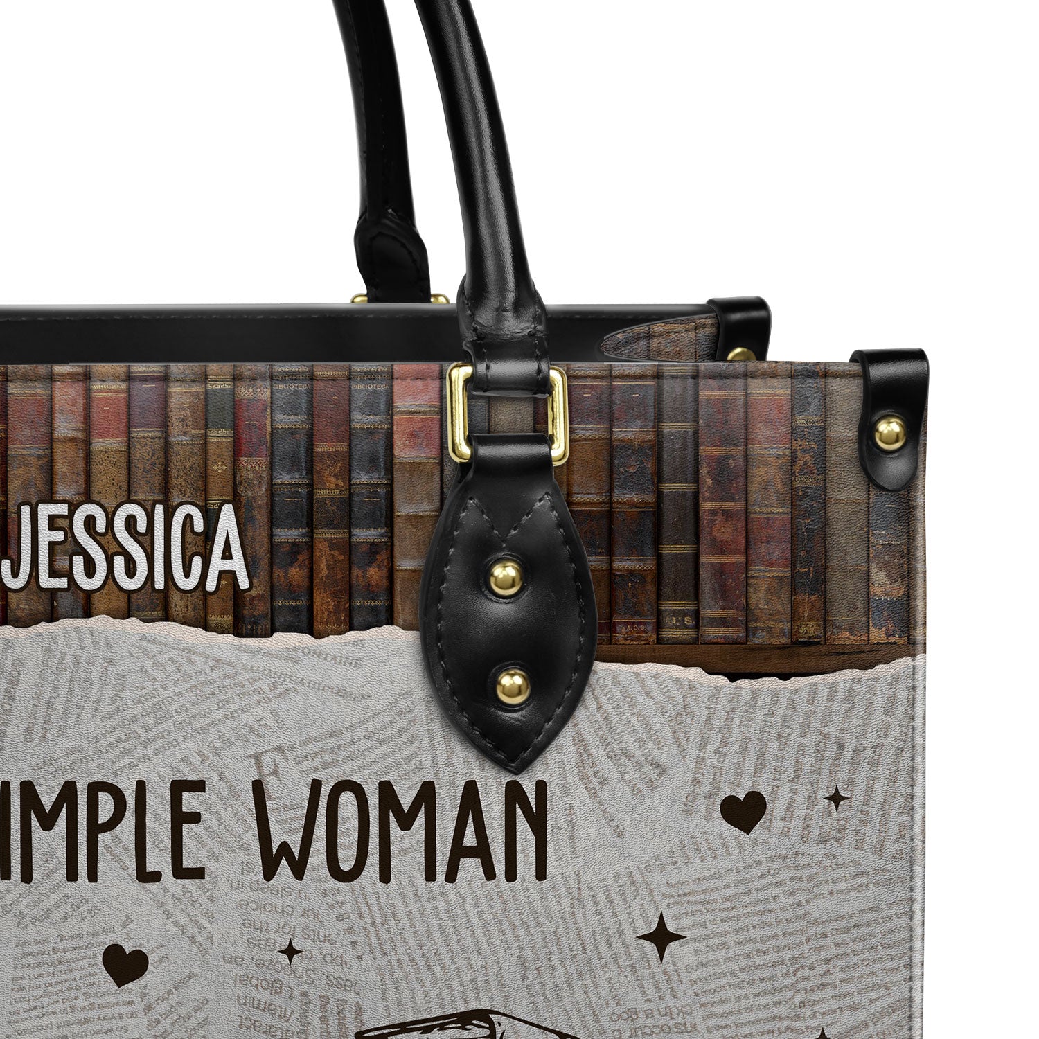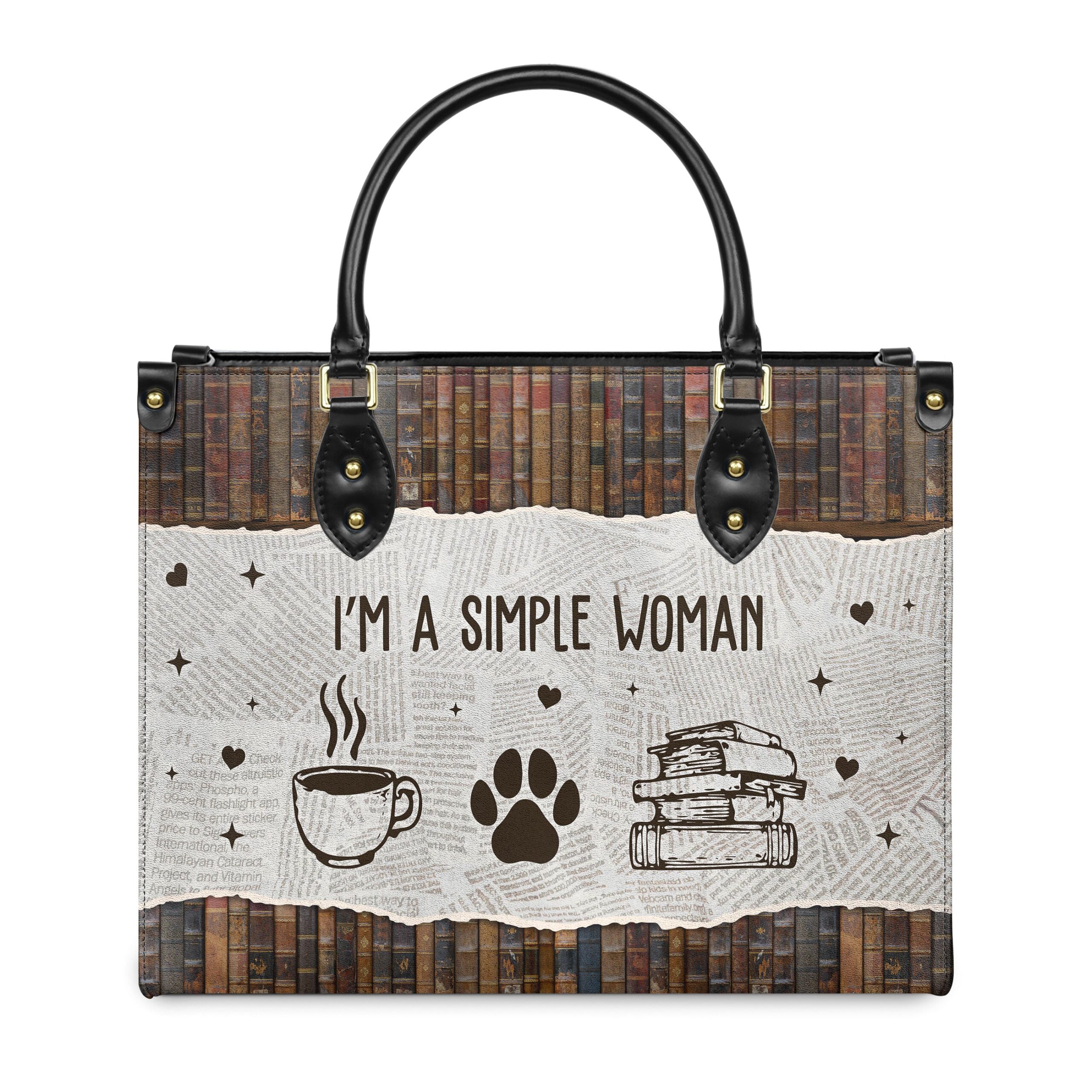 I Am A Simple Woman Leather Bag - Personalized Dog & Coffee Quote, handmade literary leather handbag
