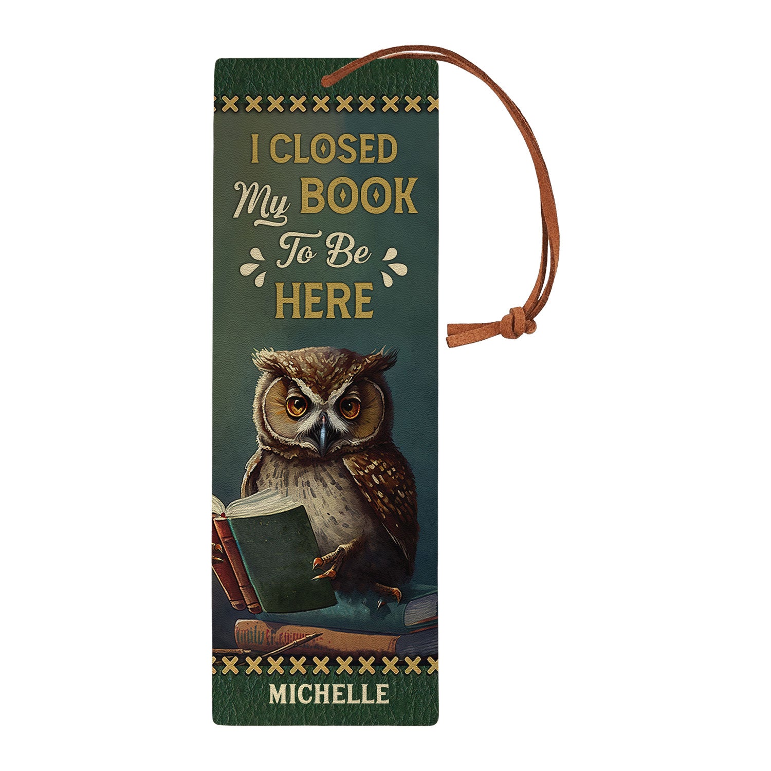 A handmade leather bookmark with “I closed my book to be here” on it. Genuine leather, good weight in the hand, and it sits flat in the pages without leaving marks. The kind of bookmark you actually want to use, not just shove in a drawer.