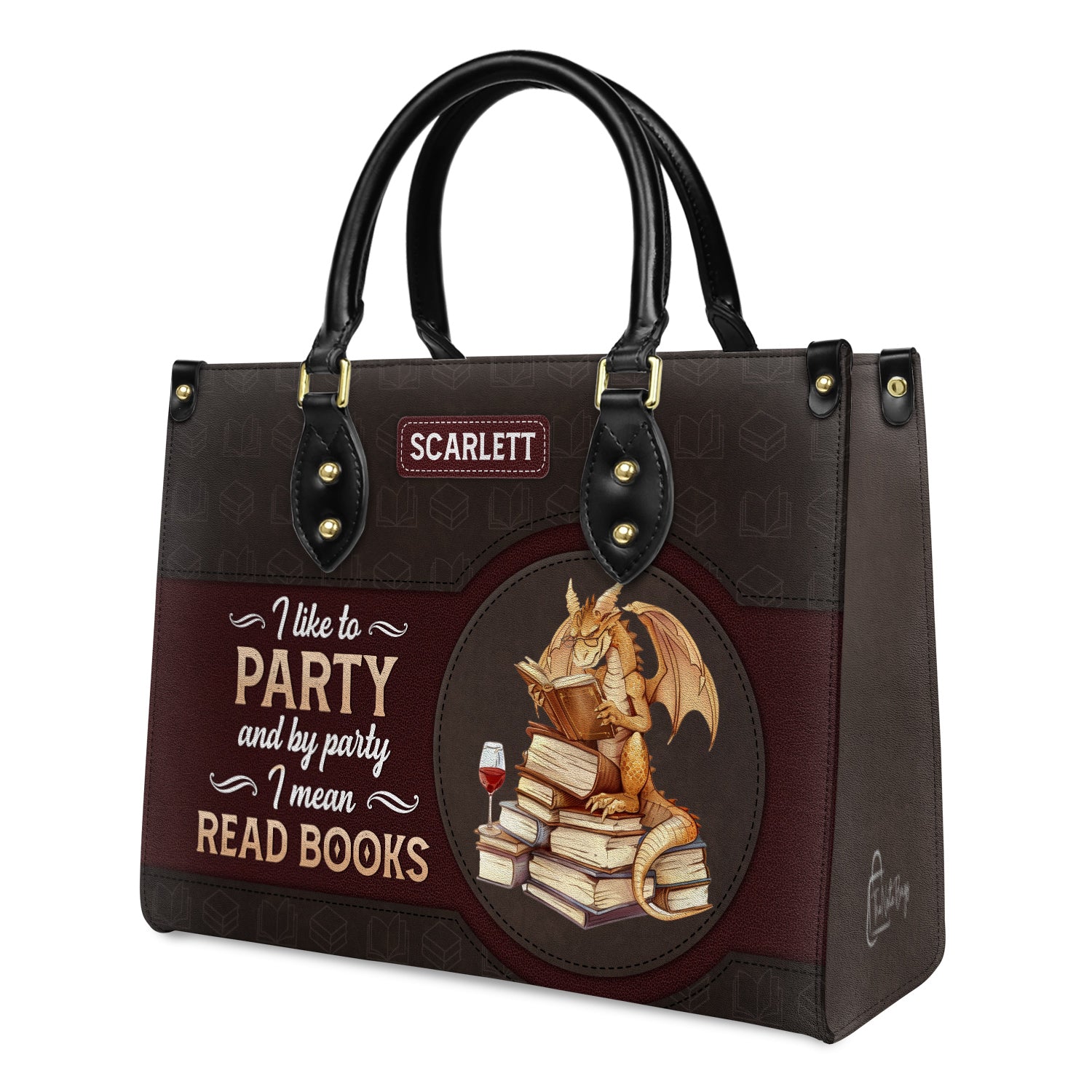 This leather bag has the quote “I Like to Party And By Party I Mean Read Books” printed on both sides. If that line makes you smile, you already know this bag is for you.