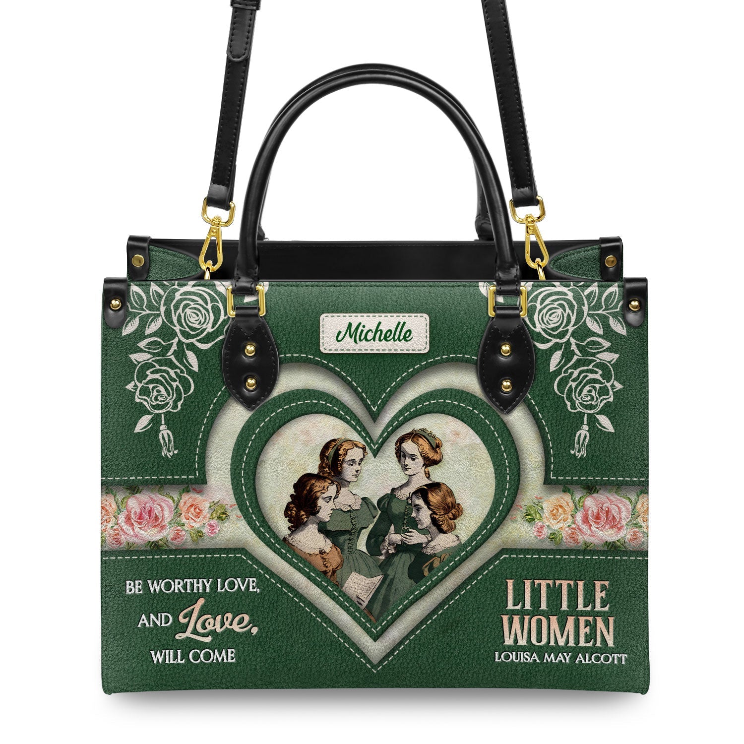This leather bag features a quote from Little Women by Louisa May Alcott, printed on both sides. If these words mean something to you, this bag was made with you in mind.
