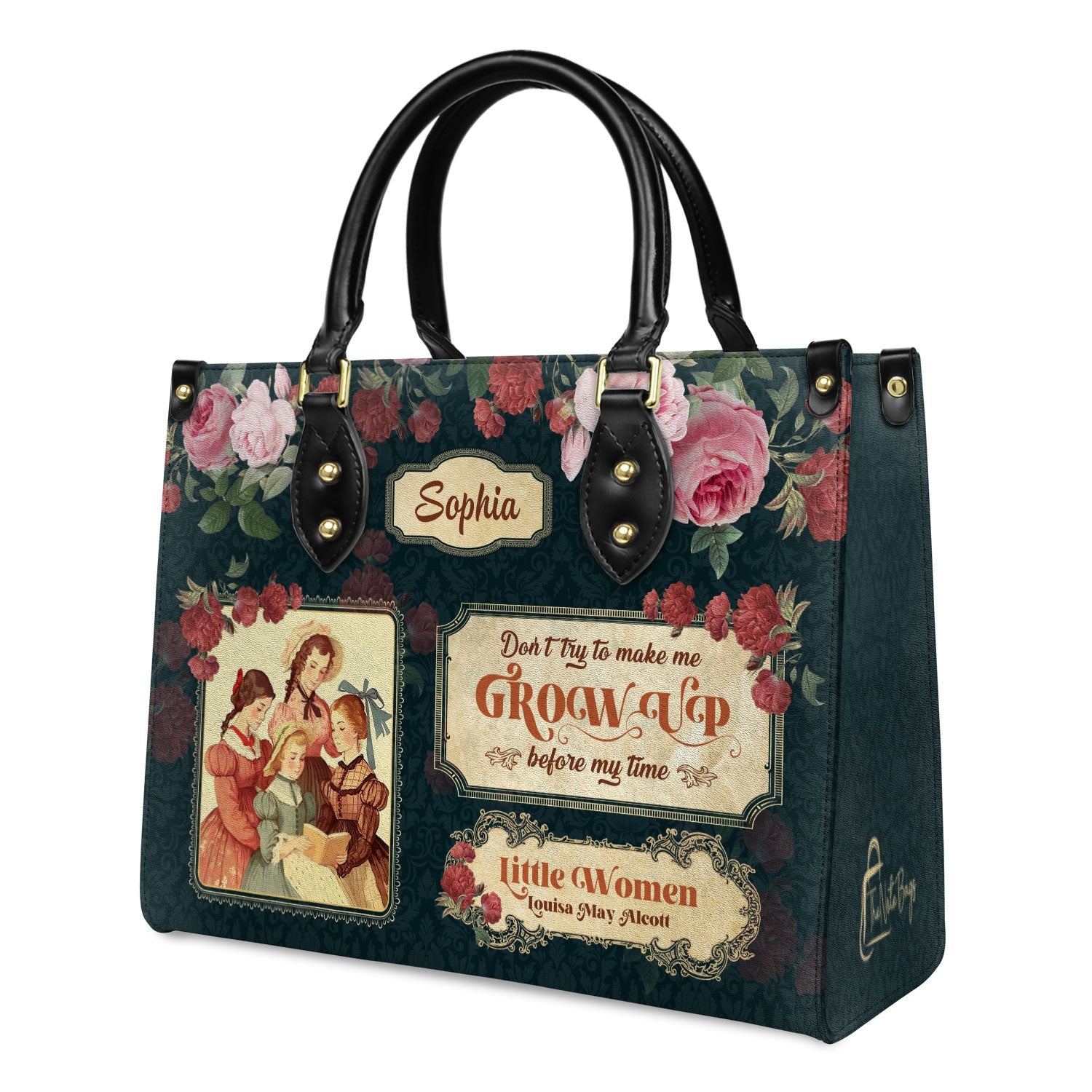 Little Women Quote Leather Bag – Don’t Try To Make Me Grow Up