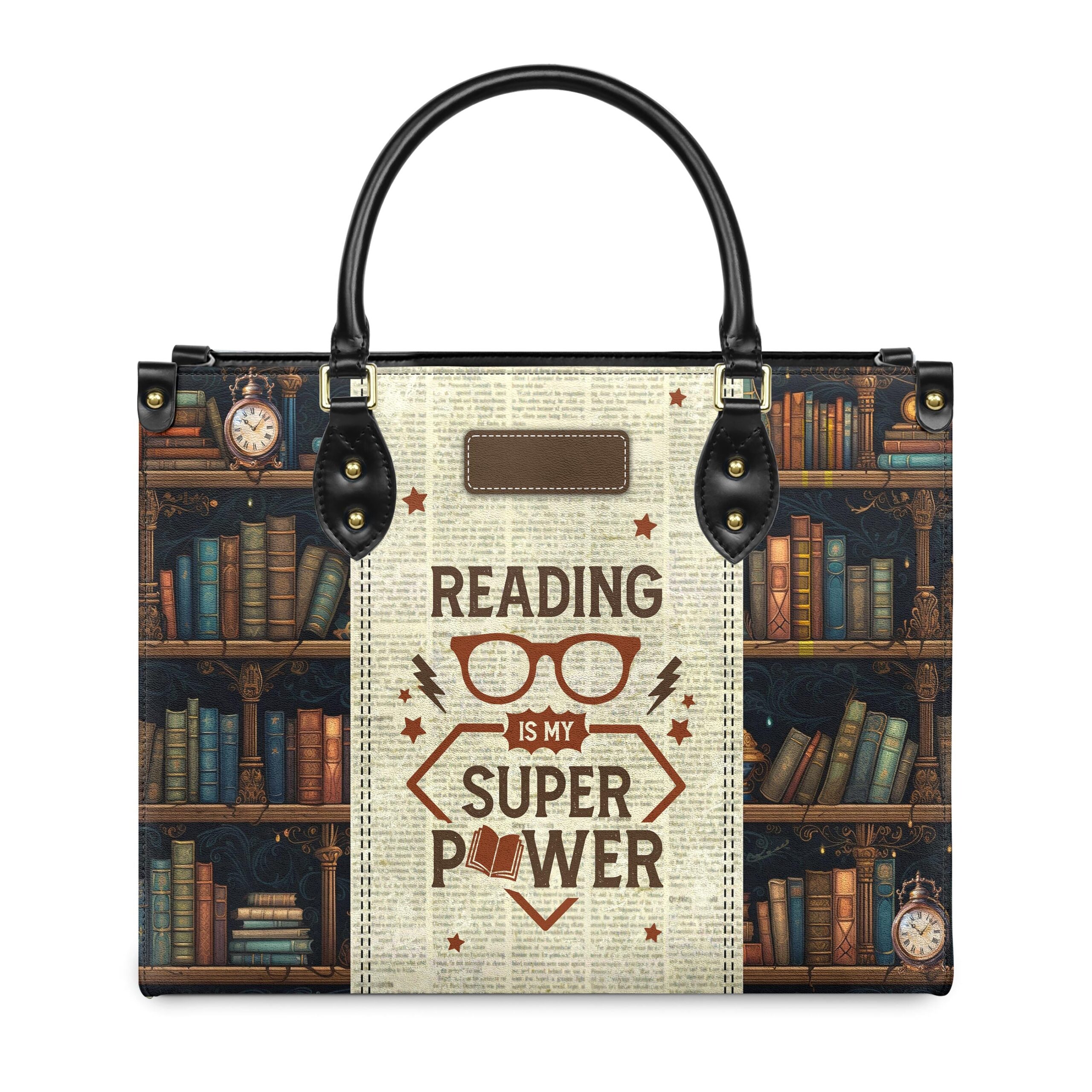 This leather bag has the quote “Reading is My Superpower” printed on both sides. If that line makes you smile, you already know this bag is for you.