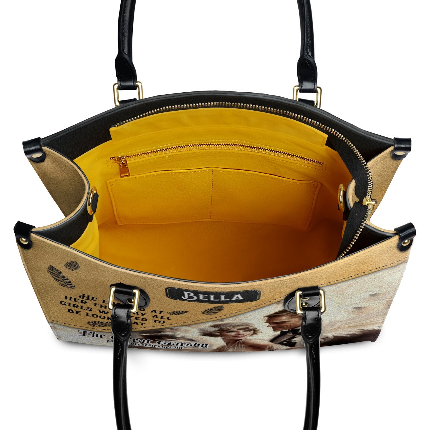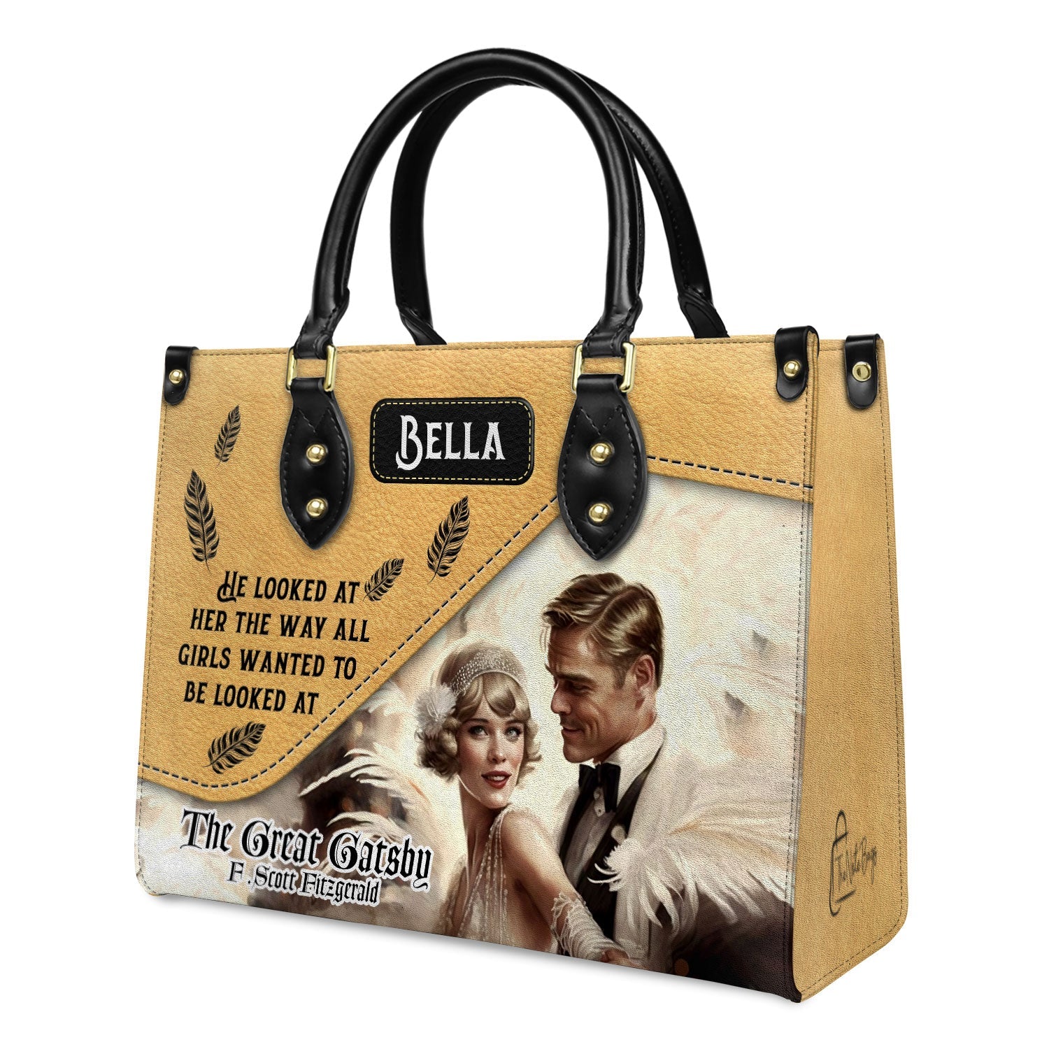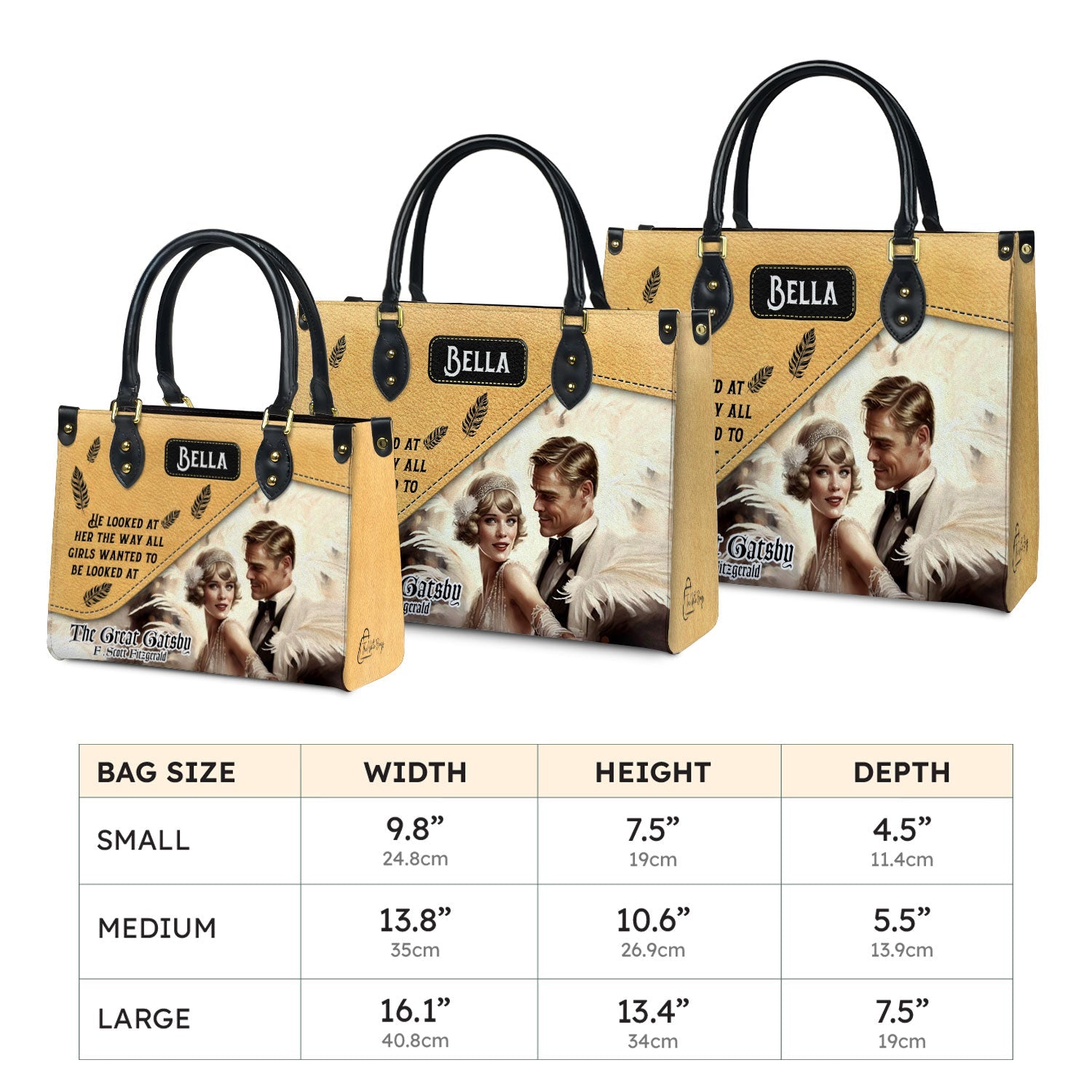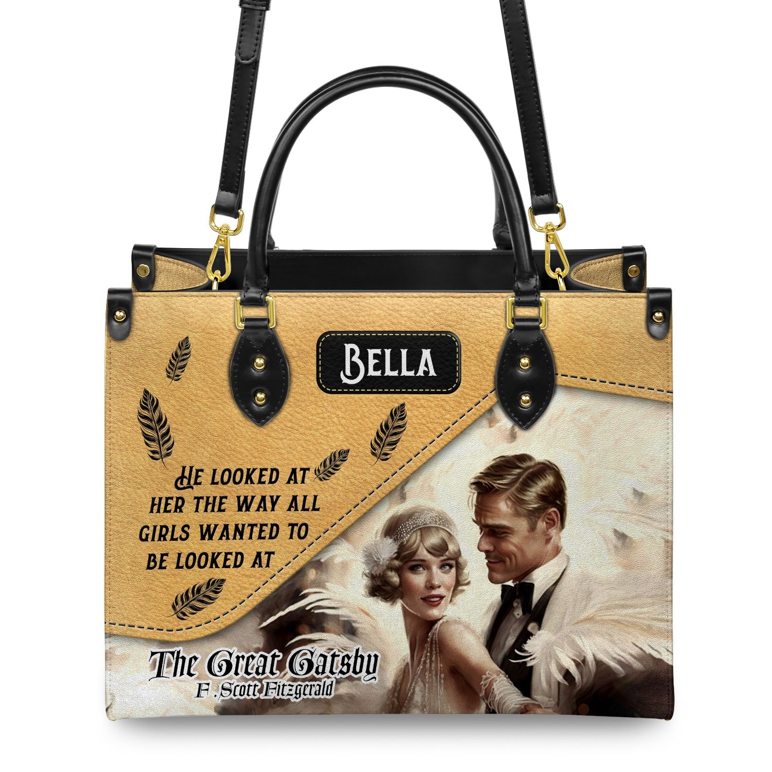 This leather bag features a quote from The Great Gatsby by F. Scott Fitzgerald, printed on both sides. If these words mean something to you, this bag was made with you in mind.