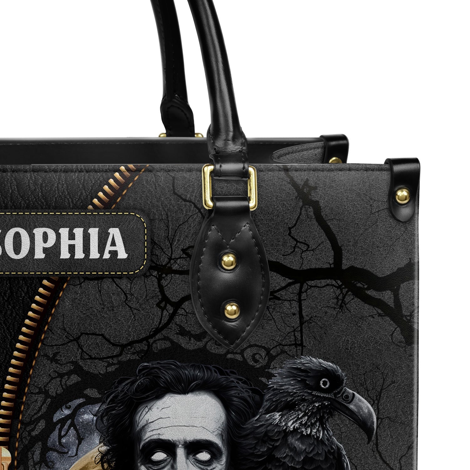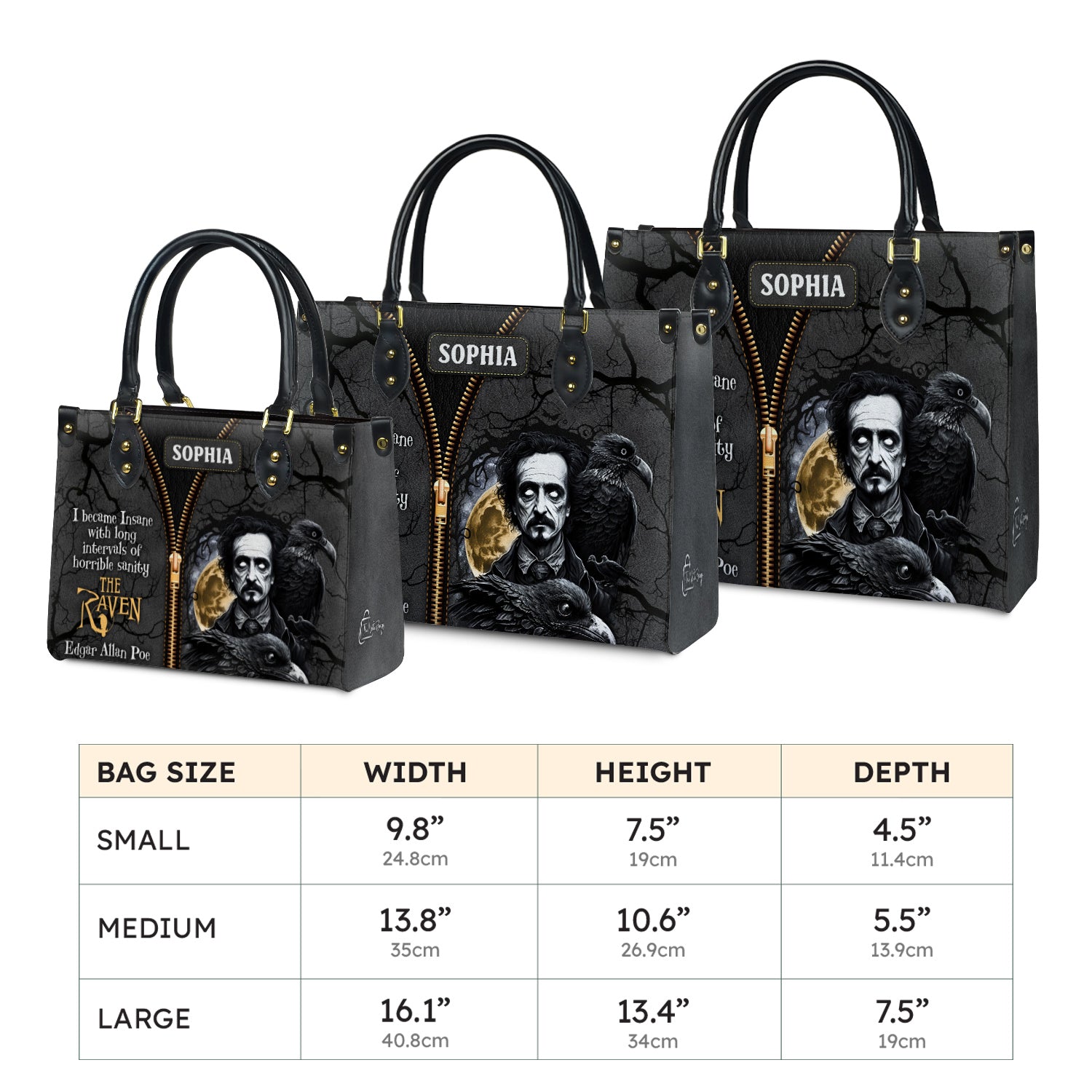 This leather bag features a quote from The Raven by Edgar Allan Poe, printed on both sides. If these words mean something to you, this bag was made with you in mind.